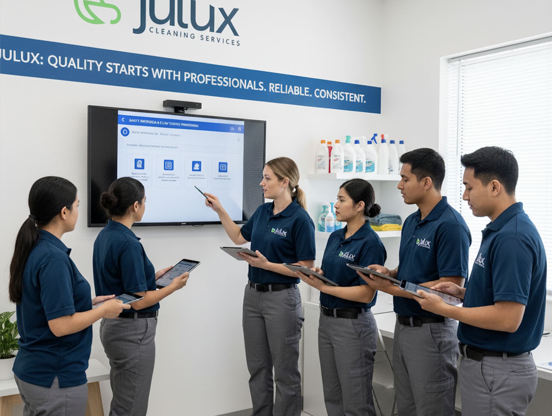 At Julux, every team member receives ongoing training in safety standards and client-specific procedures. We believe quality starts with people: professionals prepared to deliver reliable and consistent service at all times.