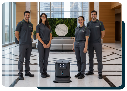 We integrate technologies that maximize resource efficiency. Our smart machines use automatic dosing and nebulization systems, allowing large surface cleaning with less water and fewer chemicals—without compromising quality. This efficiency results in lower environmental impact and direct cost savings for clients, aligning economy with sustainability.